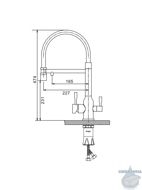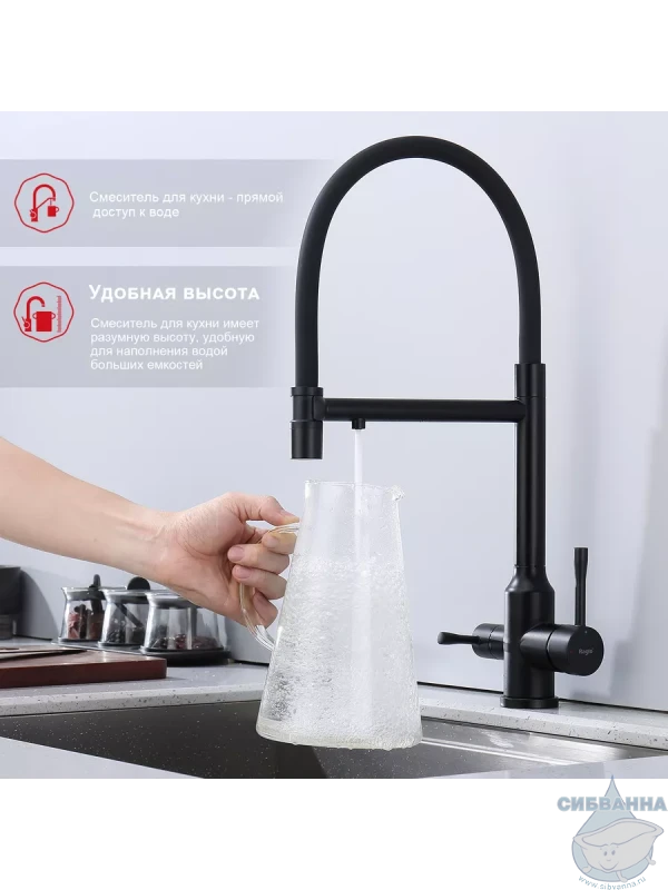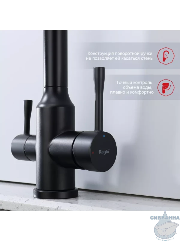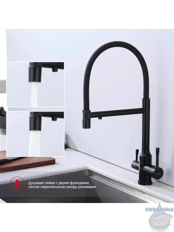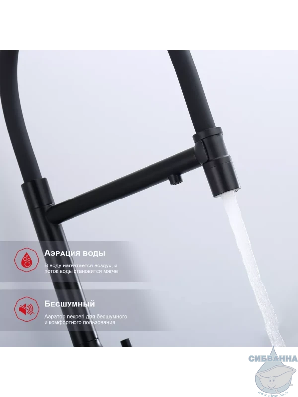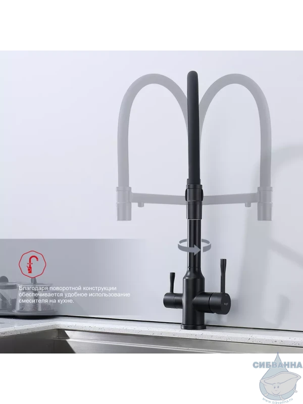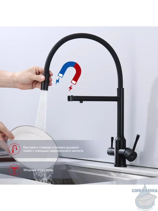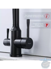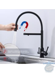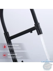 Излив: съемный на магните, поворотный, гибкий, с каналом для питьевой воды.