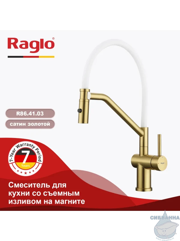 Смеситель для кухни Raglo R86.41. Характеристики: Материал: латунь. Управление: однорычажное. Механизм: керамический картридж. Излив: съемный на магните, поворотный, гибкий. Аэратор. Стандарт подводки: G 1/2. Тип подводки: гибкая. Отверстия для монтажа: 1. Монтаж: на мойку / на столешницу. В комплекте поставки: Смеситель для кухни. Гибкая подводка. Комплект креплений.