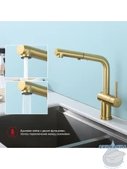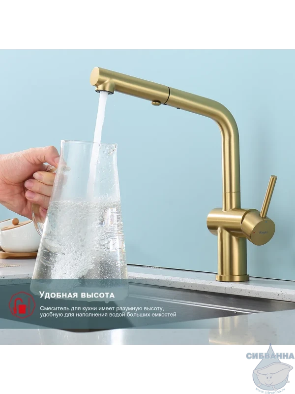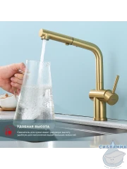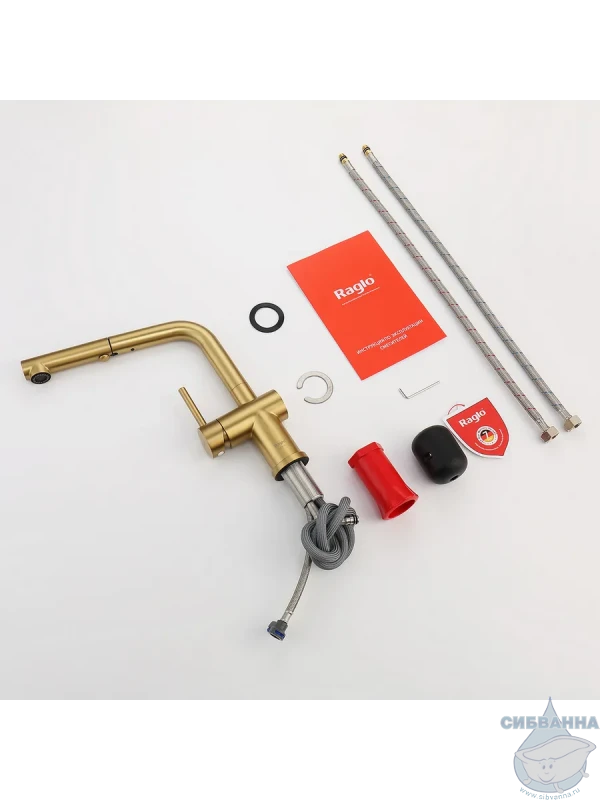 Смеситель для кухни Raglo R86.49. Характеристики: Материал: латунь. Управление: однорычажное. Механизм: керамический картридж. Излив: поворотный, выдвижной. Аэратор. Стандарт подводки: G 1/2. Тип подводки: гибкая. Отверстия для монтажа: 1. Монтаж: на мойку / на столешницу. В комплекте поставки: Смеситель для кухни. Гибкая подводка. Комплект креплений.