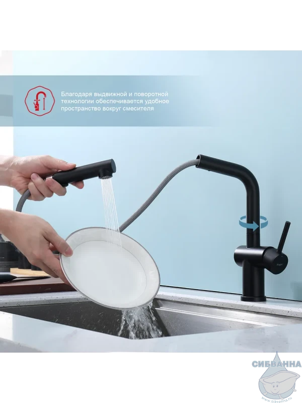 Излив: поворотный, выдвижной.