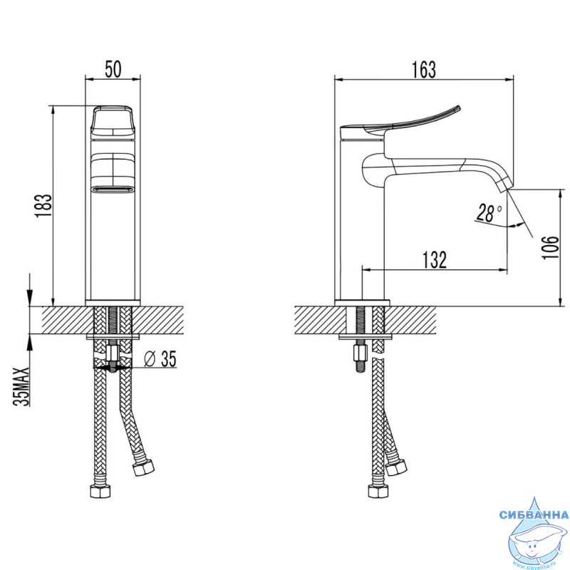 Смеситель для раковины Azario ABILITY керамический картридж, без донного клапана, хром (AZ-VQR168331С)