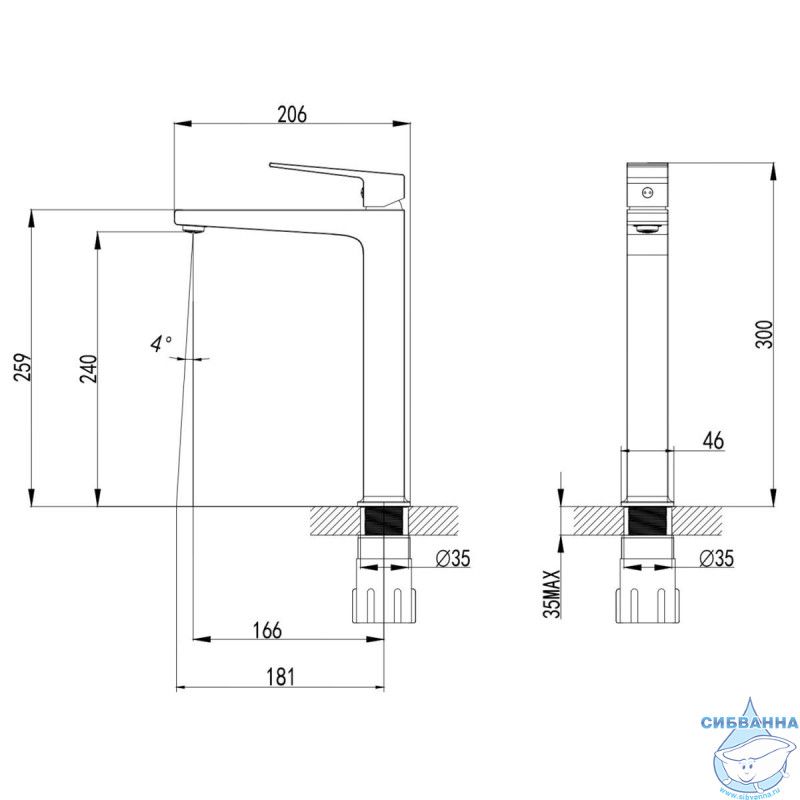 Смеситель для раковины-чаши Azario EDDIE высокий,керамический картридж, без донного клапана, хром (AZ-VBH168U07C)