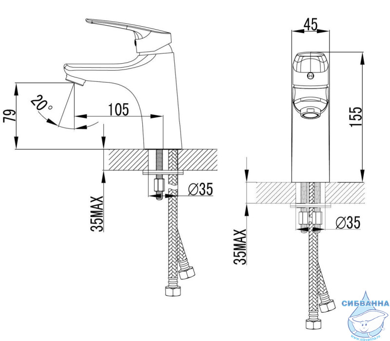 Смеситель для раковины AZARIO EVORA керамический картридж, хром (AZ-WKE168043C)