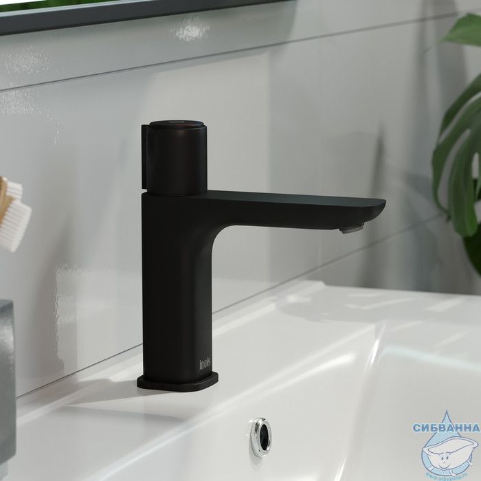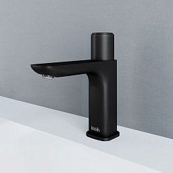 "Смеситель для умывальника с кнопочным управлением, латунь, покрытие ""черный матовый"", керамический картридж Softap, силиконовый аэратор Neoperl, пластиковый аэратор Neoperl Mikado с эффектом закручивания потока.