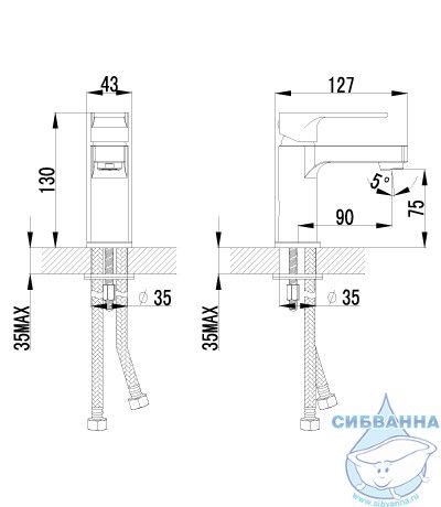 Смеситель для умывальника монолитный Аэратор Керамический картридж 25 мм. Гибкая подводка 1/2'' Металлическая рукоятка Цвет изделия: хром
