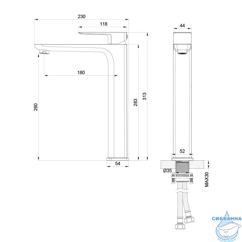 • Монтаж на раковину/столешницу
