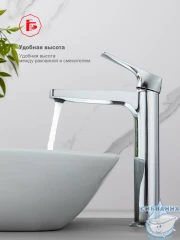 Смеситель для раковины высокий Raglo R07.15 — это идеальное сочетание современного минималистичного дизайна и высокого качества. Изготовленный из латуни, этот высокий кран для умывальника обеспечивает долговечность и надёжность в использовании, а также устойчивость к механическим повреждениям. Механизм смесителя для раковины основан на керамическом картридже с рычажным управлением, что гарантирует лёгкость и точность регулировки температуры и напора воды. Его минималистичный дизайн станет настоящим украшением вашей ванной комнаты, гармонично вписываясь в любой интерьер благодаря лаконичным формам и элегантным линиям.