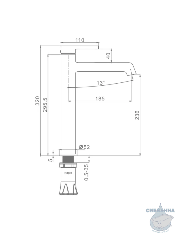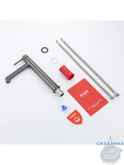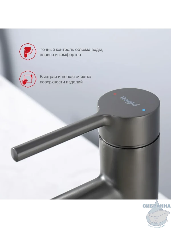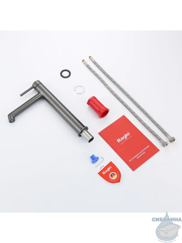 Смеситель для раковины Raglo . Характеристики: Материал: латунь. Управление: однорычажное. Механизм: керамический картридж. Излив: фиксированный. Аэратор. Стандарт подводки: G 1/2. Тип подводки: гибкая. Монтаж: на раковину/на столешницу. В комплекте поставки: Смеситель для раковины. Гибкая подводка. Комплект креплений.
