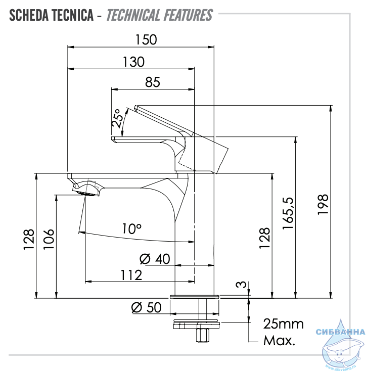 Смеситель для раковины Remer Energy EY12 (без донного клапана) (хром)