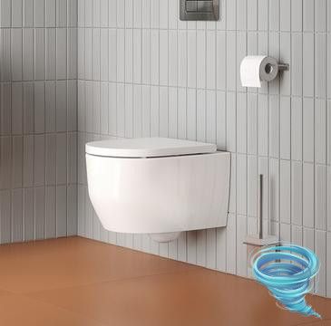 Одна из самых эффективных систем смыва: струя воды из отверстия в чаше создает эффект водоворота, полностью очищая всю внутреннюю поверхность унитаза.