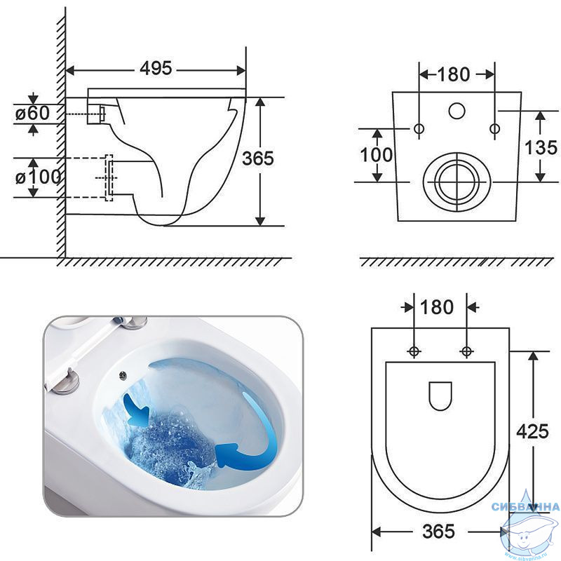 Идеальное решение для ванных комнат любого размера. Компактные габариты 365х495х365 мм позволяют установить унитаз даже в небольших помещениях, не жертвуя при этом комфортом и функциональностью.