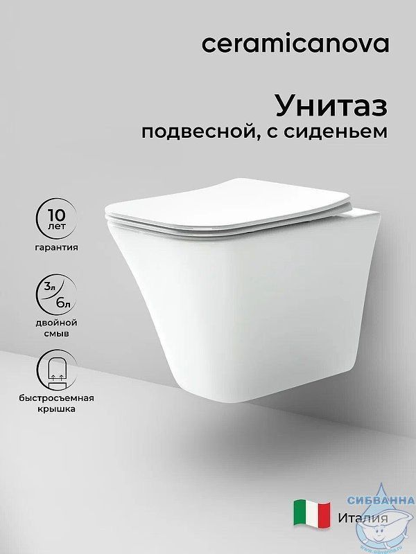 Подвесной безободковый унитаз Ceramicanova Mono CN1902 с ультратонким сиденьем.