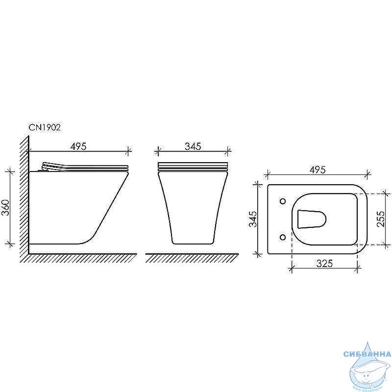 Габариты унитаза (ДxШxВ): 495x345x360 мм.