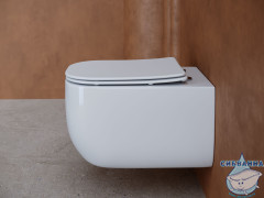 Подвесной унитаз Noel Rimless, глубокий смыв, с крепежом для полностью скрытого монтажа, ультра тонким с сидением и крышкой с функцией плавного закрытия, дюропласт. Крышка-сиденье с функцией быстрого снятия.