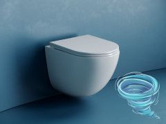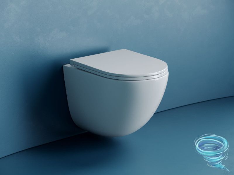 Подвесной унитаз Vogue Торнадо безободковый, с ультратонким сиденьем с микролифтом, с креплением скрытого монтажа, белый. Крышка-сиденье с функцией быстрого снятия.