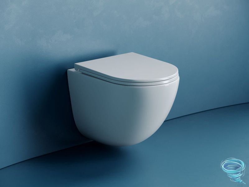 Подвесной унитаз Vogue Торнадо безободковый, с ультратонким сиденьем с микролифтом, с креплением скрытого монтажа, белый. Крышка-сиденье с функцией быстрого снятия.