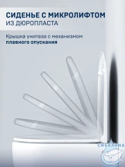 Объем поставки: чаша унитаза, быстросъёмная крышка-сиденье с микролифтом, крепления, инструкция по установке, гарантийный талон.