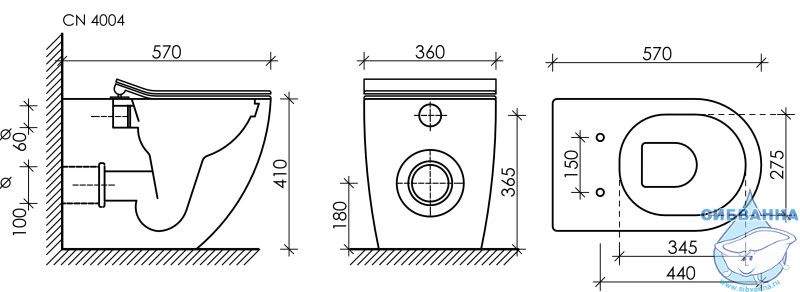 Унитаз приставной безободковый Ceramicanova Metropol Rimless CN4004MB с сиденьем Soft Close (микролифт)