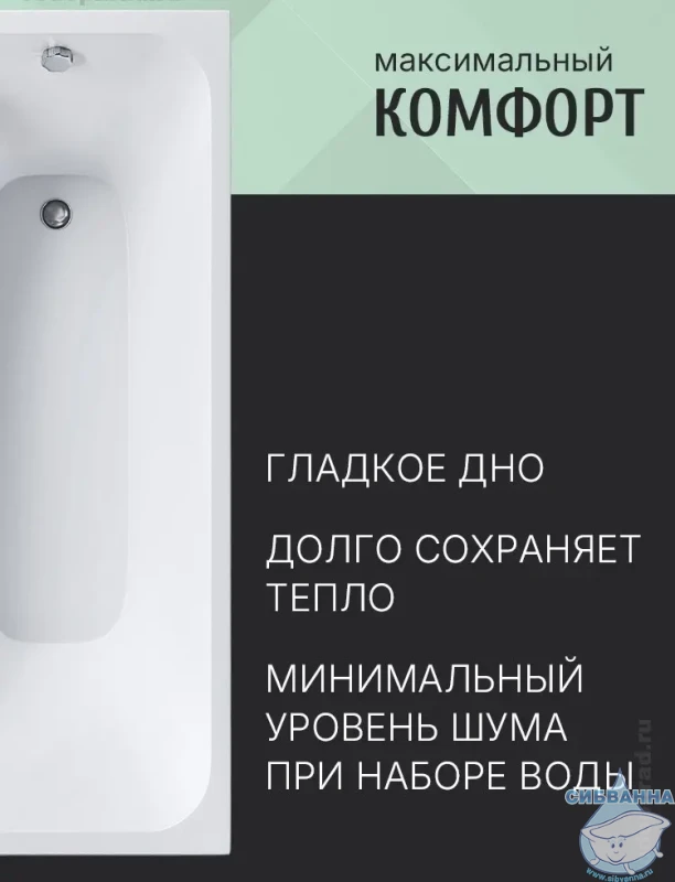 Минимальный уровень шума — акриловые ванны достаточно бесшумны при наборе воды — стенки поглощают вибрации, создаваемые при падении воды в чашу ванны.