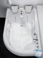 Ванна довольно вместительная, но благодаря особенному дизайну, визуально она смотрится гораздо компактнее. Риск случайных падений при выходе из ванны данной модели минимален, поскольку она изготовлена с нескользящим дном. Функционал включает в себя гидромассаж, хромотерапию и другие опции.