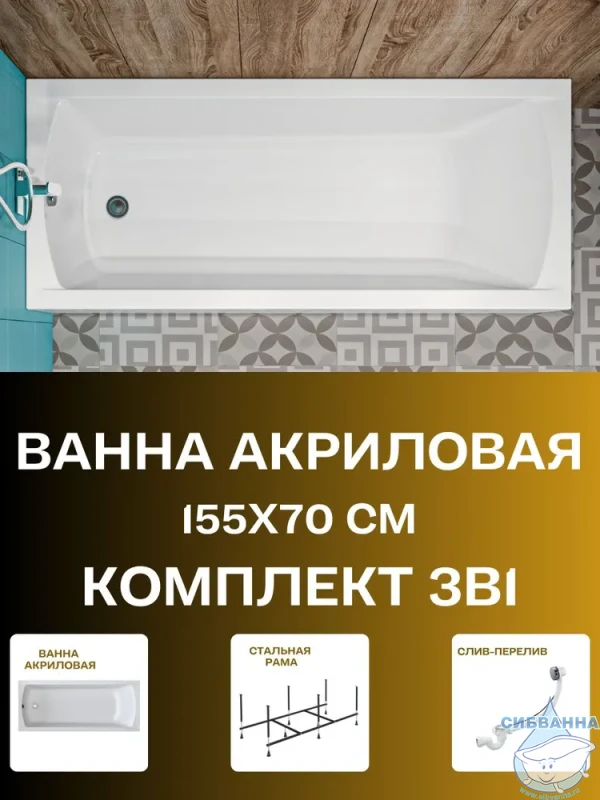 Акриловая ванна New Line Sanitary Modern 155x70 с каркасом