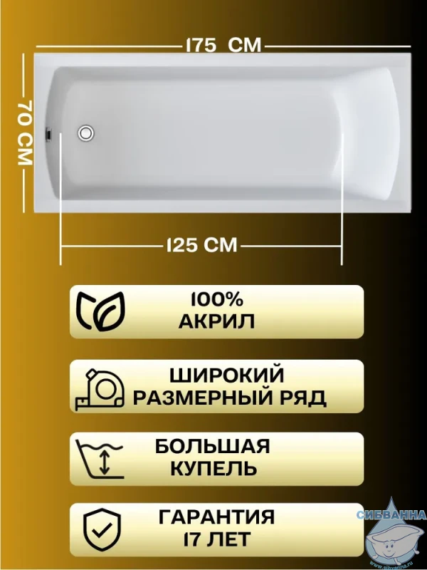 Акриловая ванна New Line Sanitary Modern 175x70 с каркасом