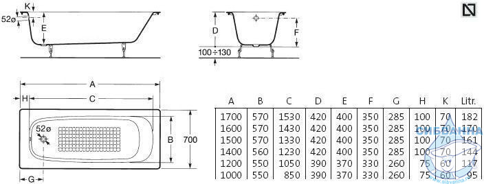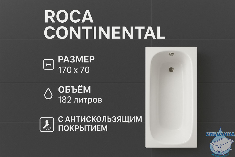 Чугунная ванна Roca Continental 170х70 (с антискользящим покрытием)