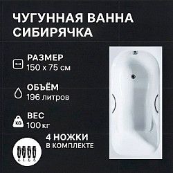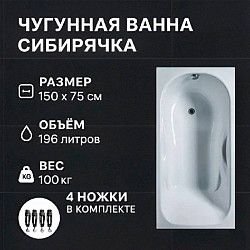 Чугунная ванна «Сибирячка» 150х75 - одна из новых моделей, которая гармонично вольется в пространство ванной комнаты и обеспечит эстетическое восприятие.