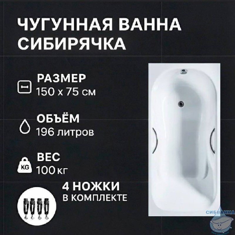 Ванна «Сибирячка» — привлекательное по цене предложение среди качественных ванн, изготовленных из чугуна. Улучшенная конструкция с подлокотниками и грамотно рассчитанным углом спинки позволит почувствовать себя комфортно. Размер 150 см подходит для большинства типовых санузлов и оптимален с точки зрения рационального расходования воды. Изделие из чугуна — оптимальный выбор для долгой эксплуатации: оно долговечно, прекрасно сохраняет тепло и просто в уходе.
