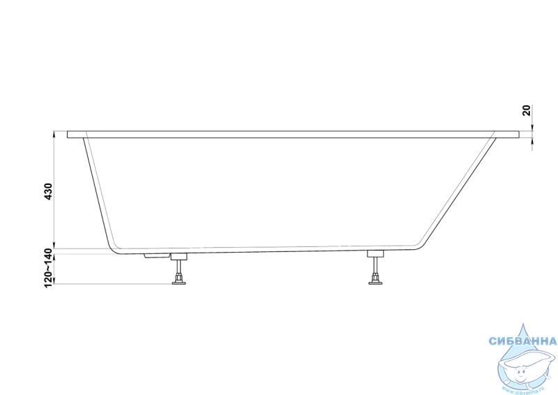 • Высота ванны, см 55 см