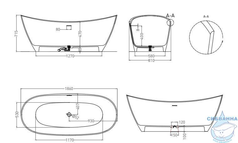 Изысканное дизайнерское решение. Позволяет внести в интерьер ванной комнаты естественность и гармонию. Отдельностоящая ванна из литого камня NOEMI производится в глубоком белом цвете, чистоту которого подчеркнёт правильно подобранная мебель из натурального материала. Невероятно удобная внутри ванна мгновенно настраивает на расслабление и отдых. . Для установки ванны требуется подиум или углубление не менее 5 см Базовая комплектация ванна (1850х765х688 мм) слив-перелив интегрированный донный клапан "Up&Down" сифон