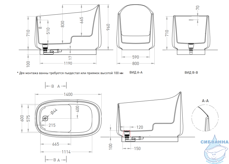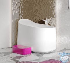 Длина изделия составляет всего 140 см, делая ванну идеальной находкой для небольших ванных комнат. Встроенное сиденье позволяет принимать ванну как сидя, так и полулёжа, полностью расслабляясь в воде. Высокое изголовье и широкие боковые бортики делают размещение в ванне более комфортным и способствуют полноценной релаксации.