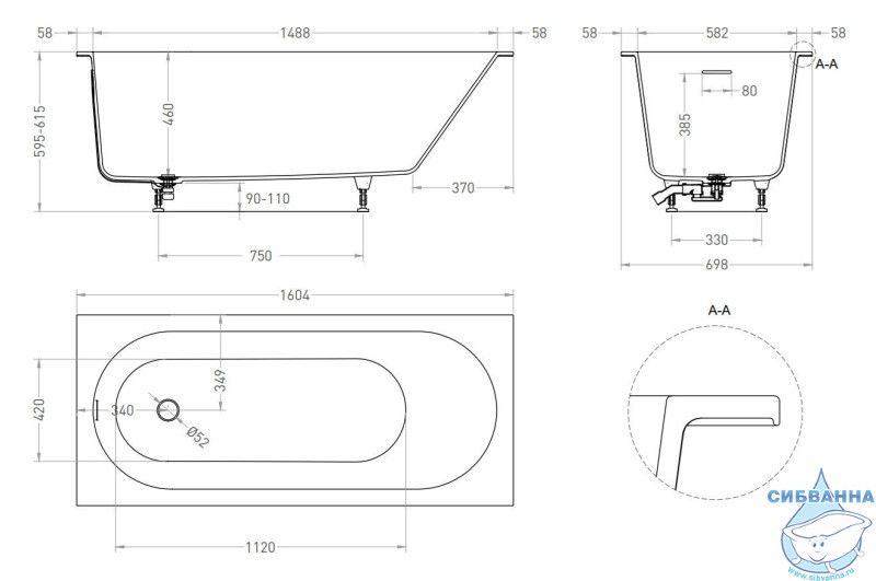 Ванна из искусственного камня Salini Ornella Kit 160x70 (материал S-Sense, белый глянцевый)