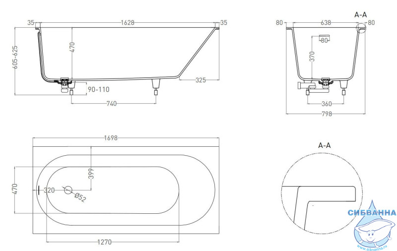 Ванна из искусственного камня Salini Ornella Kit 170x80 (материалS-Stone, белый матовый)