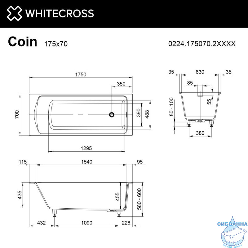 Ванна из искусственного камня Whitecross Coin 175x70 (RAL матовый)