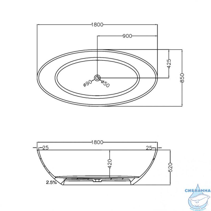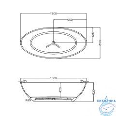 Длина 180. Ширина 85. Высота 52. Диаметр сливного отверстия 5. Расположение слива по центру. Материал полиэфирная смола. Установка отдельностоящая. Форма овальная. Смеситель установка не предусмотрена. Объем, л 250. Комплектация донный клапан.