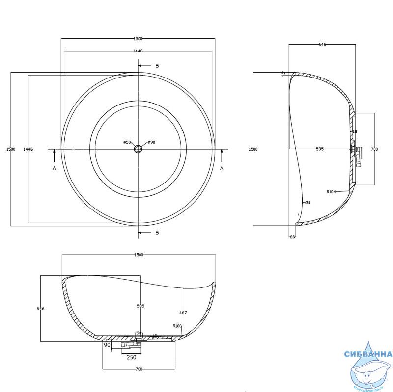 Длина 150. Ширина 150. Высота 64.6. Диаметр сливного отверстия 5. Расположение слива по центру. Материал полиэфирная смола. Установка отдельностоящая. Форма круглая. Смеситель установка не предусмотрена. Объем, л 380. Комплектация донный клапан.