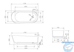 Длина 170. Ширина 80. Высота 58. Диаметр сливного отверстия 5. Расположение слива стандартное. Материал полиэфирная смола. Установка отдельностоящая. Форма овальная. Смеситель установка не предусмотрена. Объем, л 245. Комплектация донный клапан.