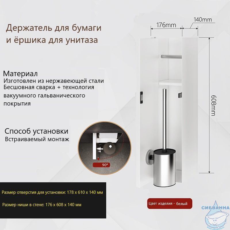 Встраиваемая ниша с ершиком (белый)