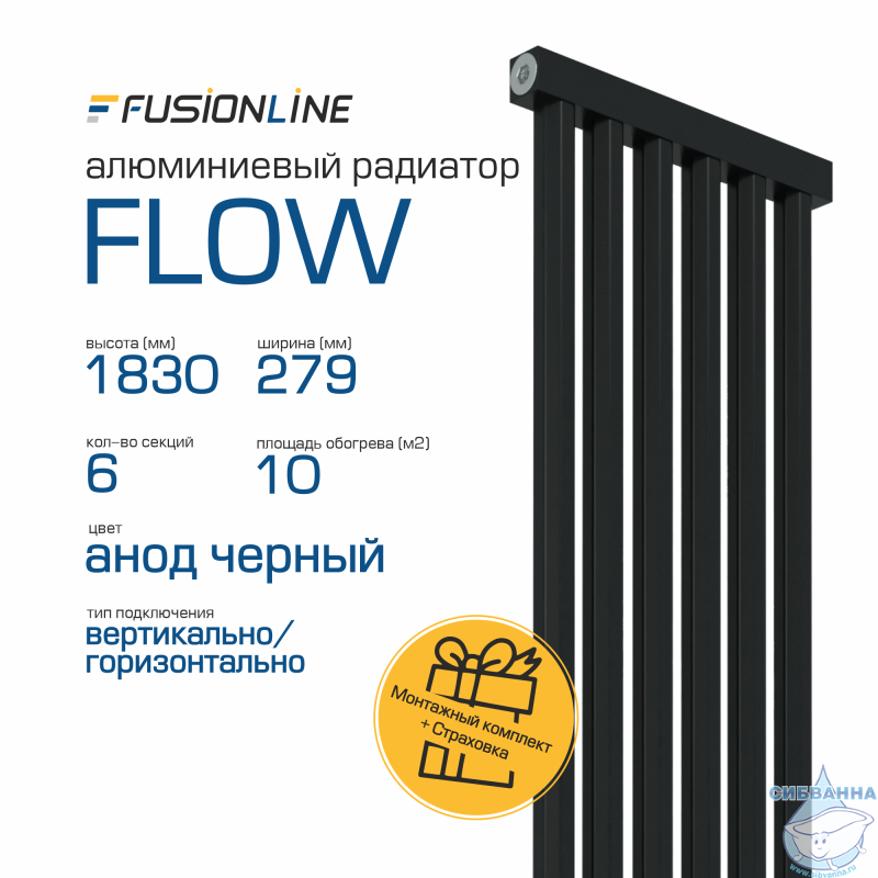 Радиатор FLOW 1100 - 4 - 392 - 4 - Черный анодированный C35SB Дробеструйная обработка