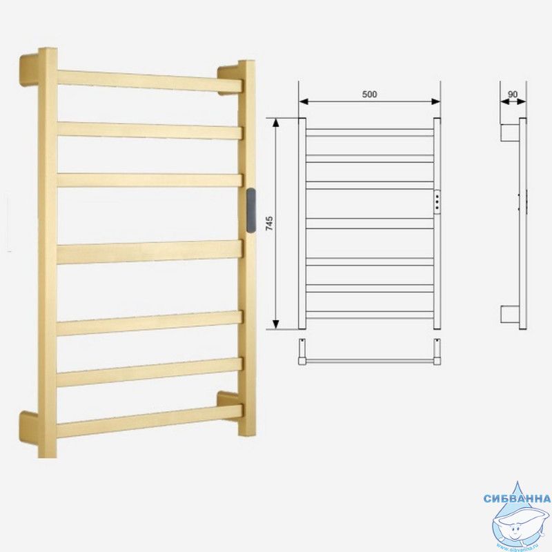 Электрический полотенцесушитель Отделка: брашированное золото Материал: нержавеющая сталь 304 (Размер): 400x800x90 мм