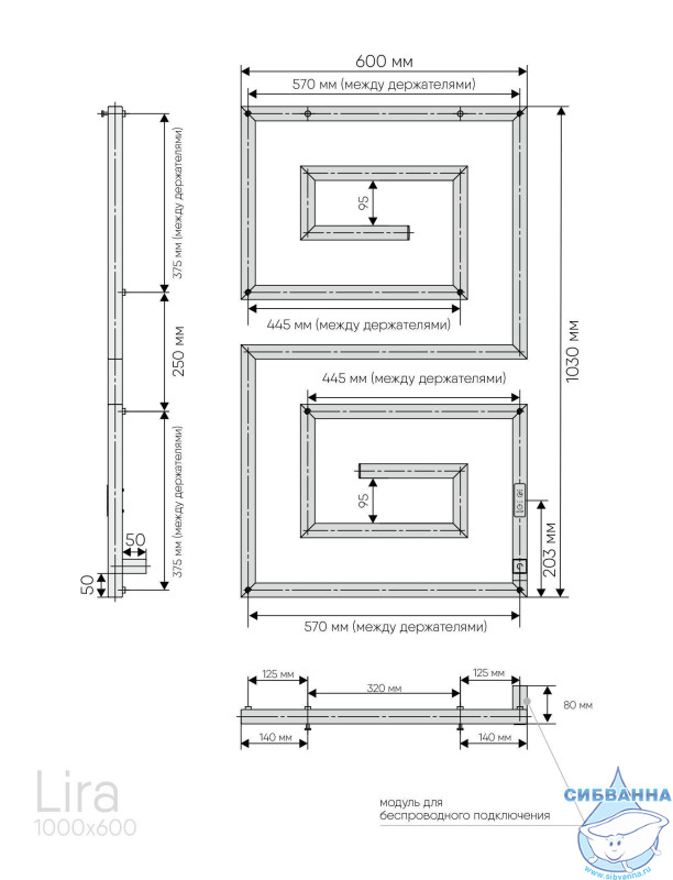 Полотенцесушитель электрический Indigo Lira (с таймером) 60х100 черный муар (с возможностью скрытого подключения, подключение R)