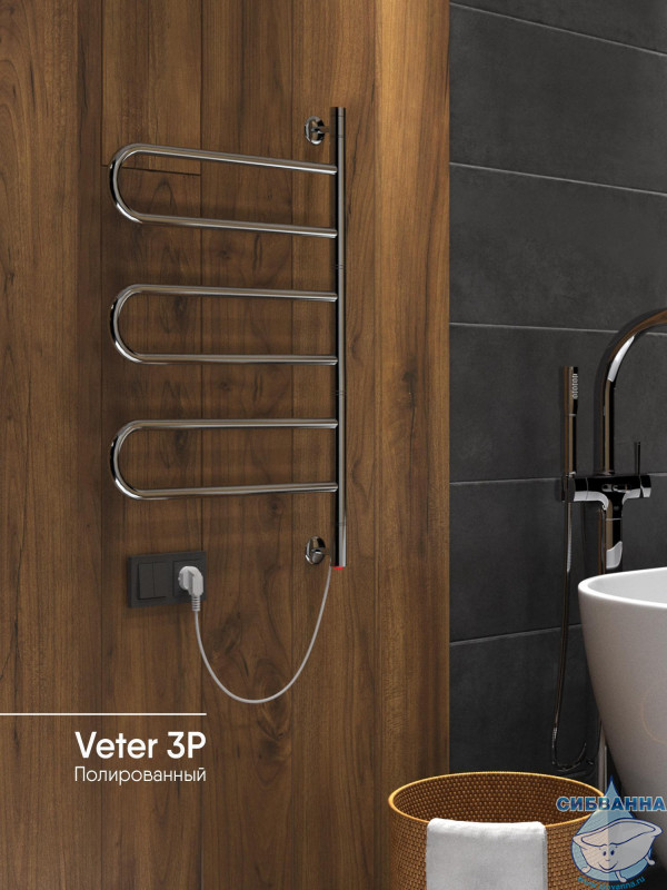 Полотенцесушитель электрический INDIGO Veter 3P выбирают за его поворотный механизм. Он удобен в использовании, так как угол поворота изделия 180 градусов, позволяет удобно разместить текстильные изделия.
