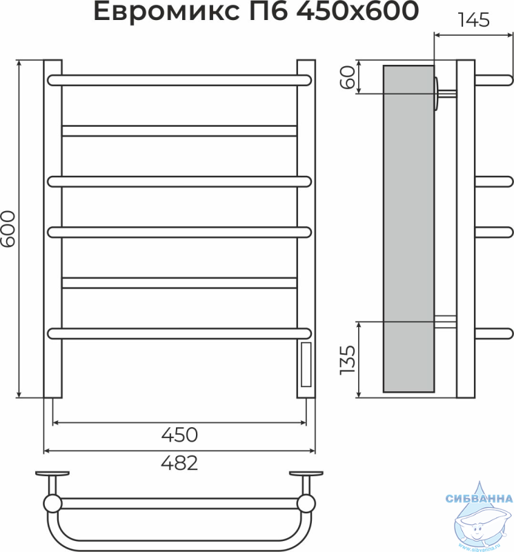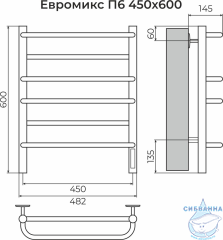 Полотенцесушитель электрический Санприз Евромикс П6 45Х60 (белый матовый) (подключение универсальное)