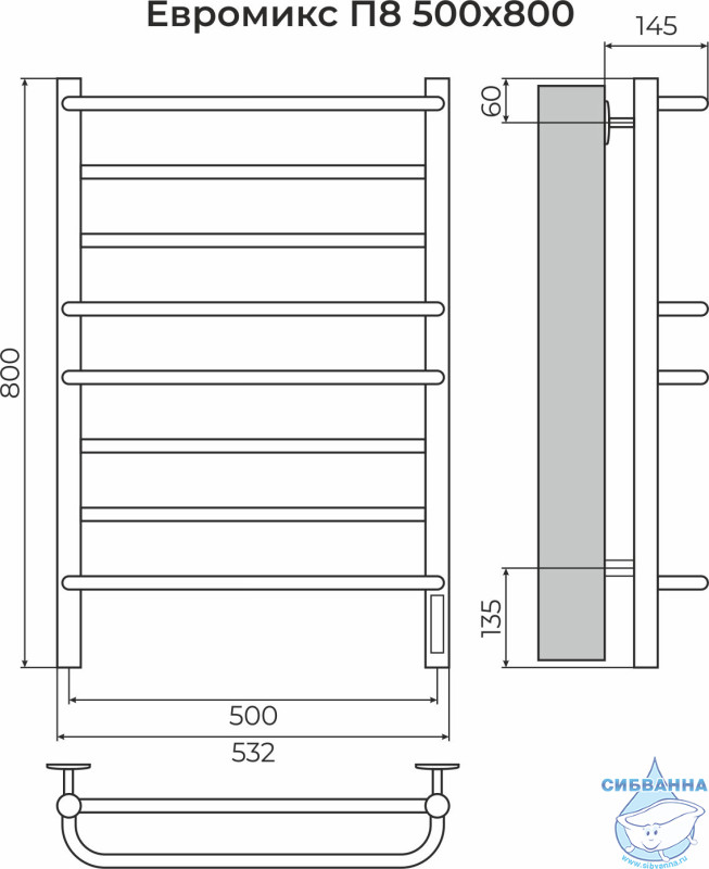 Полотенцесушитель электрический Санприз Евромикс П8 50Х80 (черный матовый) (подключение универсальное)