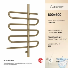 Полотенцесушитель электрический Сунержа Эпатаж L 60х80 (с возможностью скрытого подключения, подключение (золото)
