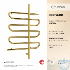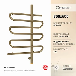 Полотенцесушитель электрический Сунержа Эпатаж L 60х80 (с возможностью скрытого подключения, подключение (золото)