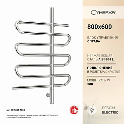 Полотенцесушитель электрический Сунержа Эпатаж L 60х80 (с возможностью скрытого подключения, подключение (хром)