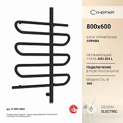 Полотенцесушитель электрический Сунержа Эпатаж 60х80 (с возможностью скрытого подключения, подключение (черный матовый)