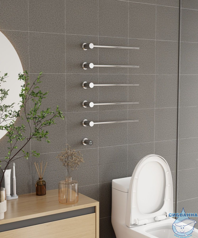Полотенцесушитель Terminus (Терминус) Аккорд изготовлен из качественной нержавеющей стали с полированным покрытием. Изделие выполнено в формате пяти настенных перекладин, на которые удобно расположить белье или полотенца. Для настройки температуры и таймера используется сенсорный терморегулятор.